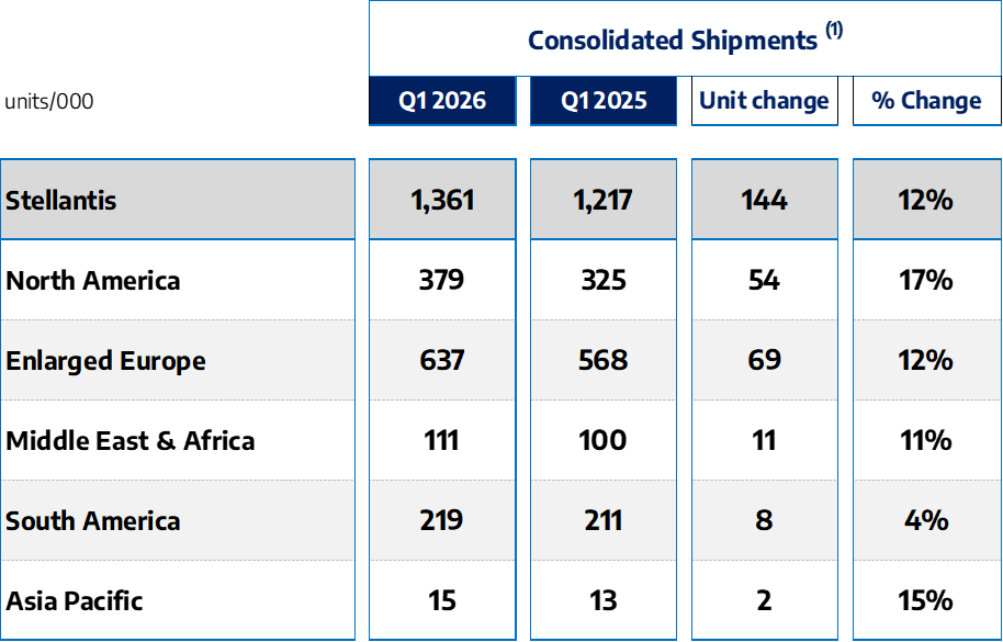 A Stellantis N.V. divulgou hoje as suas estimativas de entregas consolidadas relativas ao primeiro trimestre de 2026. O termo “entregas” descreve o volume de veículos entregues a concessionários, distribuidores ou diretamente da Empresa a clientes de retalho e de frotas, que permitem contabilizar as receitas.